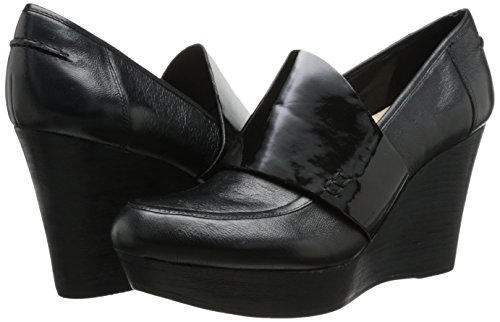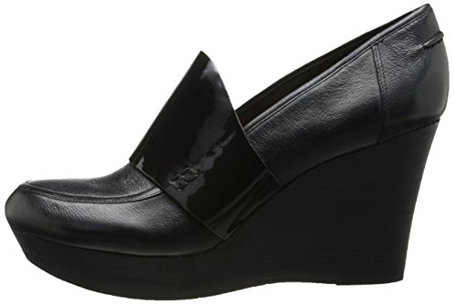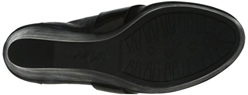Studio : Naya Publisher : Naya Binding : Apparel Product Description If you crave drama in your everyday design, slip into the Naya Othello pump. This women's high-heeled wedge dress shoe is offered in leather with a faux patent or embossed leather instep band; a refined moc-toe stitch detail adds interest. Underfoot, a cushioned footbed supports and eases your stride atop the stable midsole of the Naya Othello wedge shoe, which is finished with a durable, shock-absorbing rubber sole. 0