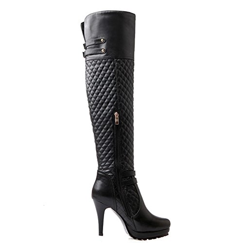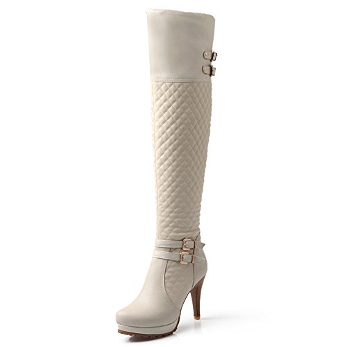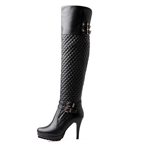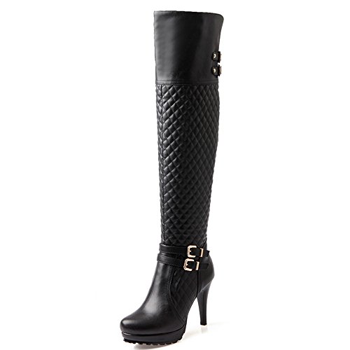 Nine Seven Genuine Leather Women's Sexy Stiletto Heel Platform Buckle Handmade Over The Knee Boot