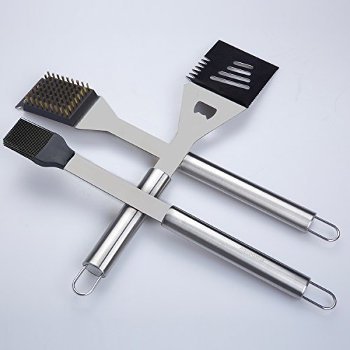 - PREMIUM STAINLESS STEEL QUALITY: Won't rust! Won't crack like wood handles, making this barbecue tool set durable and long-lasting, easy to clean