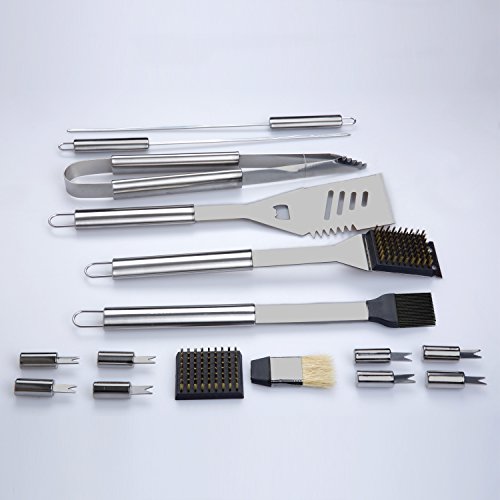 - BARBECUE SET provides 19 pieces grilling tools and an aluminum case with dual latches for secure storage