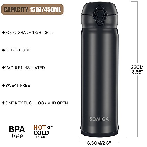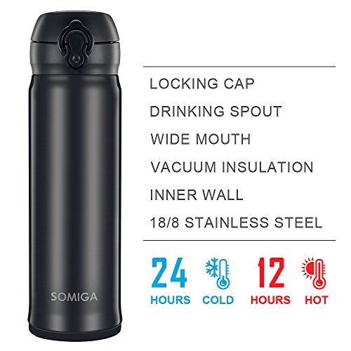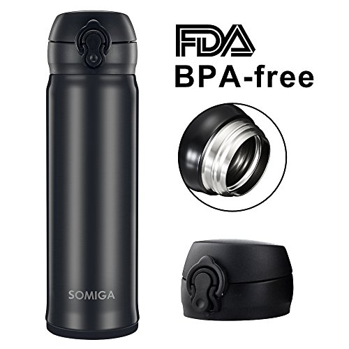SOMIGA Stainless Steel Water Bottle with Flip Lid - Double Wall Vacuum Insulated 16 Oz Leak Proof Water Bottle, BPA Free for Office & Home Black)