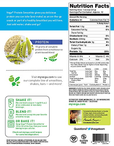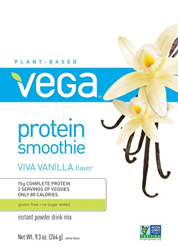 Drink Vega Protein Smoothie as part of a healthy breakfast or as a delicious on-the-go snack you’ll love. Just add water or your favorite non-dairy beverage, shake and go with 15 grams of plant-based protein, 0 grams of sugar, and up to 90 calories per serving. Enjoy Vega Protein Smoothie in delicious Viva Vanilla, Choc-a-lot, Bodacious Berry, Natural, and Tropical Tango.Feature