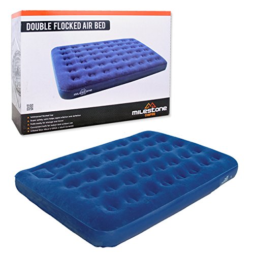 ReleaseDate : 2016-03-30 Studio : Benross Publisher : Benross Binding : Sports Product Description The Milestone camping brand has been providing great value quality camping items in the up for many years and is now being launched in USA. This fantastic FLOCKED airbed from the Milestone camping range is made from a strong vinyl coil beam construction to ensure that the airbed is extremely durable and long lasting. The waterproof FLOCKED top prevents sheets from slipping off and also provides a soft velvety feel which adds to the comfort. A super safety valve helps rapid inflation and deflation with an approximate 1 minute inflation time depending on desired firmness and pump used. The airbed folds easily for storage and travel making it perfect for both indoor and outdoor use. Please search for more great Milestone camping products on Amazon.com including tents, airbeds, sleeping bags and folding camp beds. 0