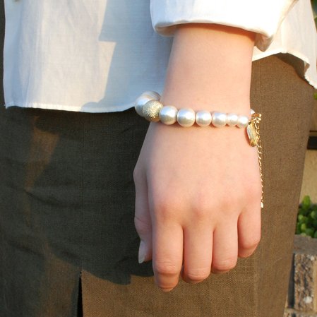 【심플×차이 하여 색어필】크기그라데이션이 아름다운 품위가 있는 코튼 펄 중에(속에),1알만 끼워넣었 스타 더스트 볼이,멋장이의 포인트가 되어 있는 팔찌입니다.adjuster 첨부이므로크기조정이 가능합니다.
