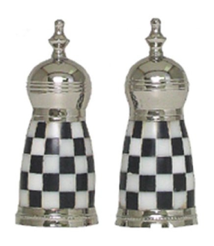 Salt & Pepper Shakers w/ Black & White Checkered Bone Sides - Checkers