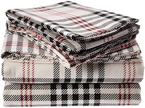Tribeca Living 200-GSM Plaid Printed Deep Pocket Flannel Sheet Set, Queen