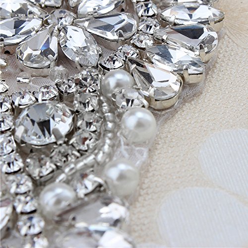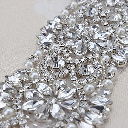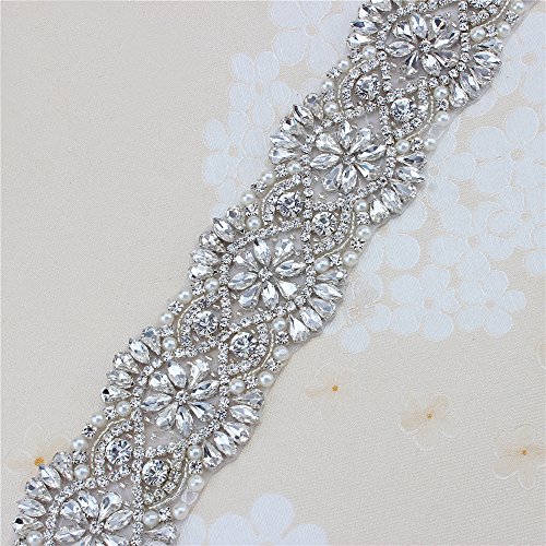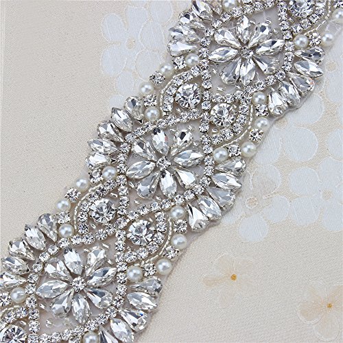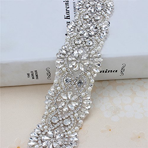 Rhinestone Applique Belt for Bridal Sash-Beaded Crystals and Pearls-Hot Fix or Sew on-Sliver-1 Piece(18.9”2”in)