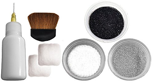 Comes with enough White Lace mix for 10-15 designs. Silver and Black glitter included.