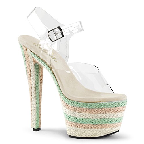 Binding : Apparel Product Description Sensuous. Sexy. Wild. No other adjectives are more fitted to describe the essence of the Pleaser brand of footwear and its extensive range of products. As the ultimate go-to name in sexy shoes, Pleaser has become the standard all others are judged by. This Sky 308ESP Sandal feature ankle strap, clear vamp and braided espadrille platform. Heel height: 7' (17.75cm). Platform height: 2 3/4' (7cm). Material: Synthetic. 0