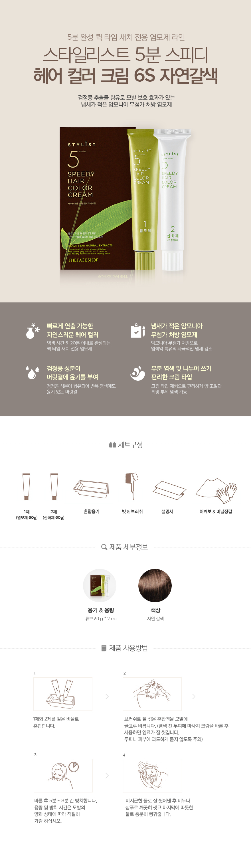 [THE FACE SHOP] Stylist 5minutes Hair Color Cream 6S Natural Brown_60ml*2ea