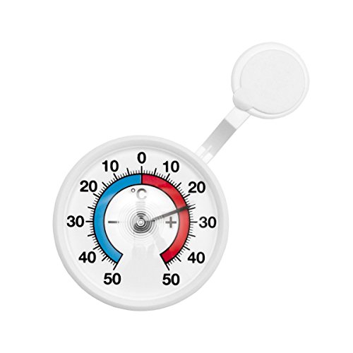 -. Title : Bimetall Analog Fenster , Außen , Klebe Thermometer . Fensterthermometer . Temperaturanzeige + / - 50 °C mit drehbarem Haltearm . Kunststoff Farbe weiss