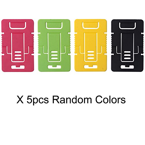 This Bundle of 5PCS Colorful Credit Card Size Compact Cell phone Mount Holder / Stand / Cradle is a convenient companion of your cell phone for hands-free portrait and landscape viewing. Compact credit card size & and re-foldable design is easy to bring with wherever you go.