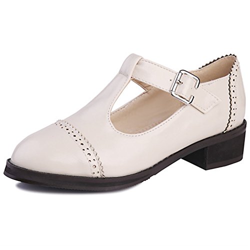 -. Binding : Apparel -. Brand : Summerwhisper -. Department : womens -. Feature : Heel height approximate 1.6 inches; For ladies who want to stand out anywhere, any time / Casual round toe; Elegant t-strap; Comfort chunky heel; Convenient buckle closure / Vegan synthetic leather upper; Anti skid durable rubber sole; Breathable and healthy / High fashion, low price; Specific design gives this a chic, timeless look; At an affordable price / Easy to match different outfits in different occasions; Give you ease and enjoyment -. ProductGroup : Shoes -. ProductTypeName : SHOES -. Title : Summerwhisper Women's Trendy Pointed Toe Buckle T-Strap Low Top Oxfords Sandals Mid Heel Brogues Work Shoes