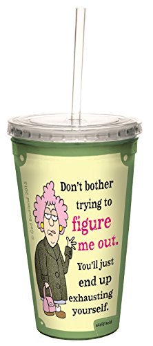 Tree-Free Greetings 16-Ounce Double-Walled Cool Cup with Reusable Straw, Aunty Acid Figure Me Out (CC98415)