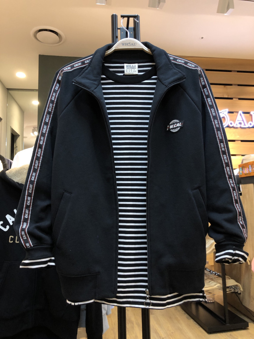 양쪽 목선부터 소매까지 내려오는 테이핑라인이 포인트를 주며,