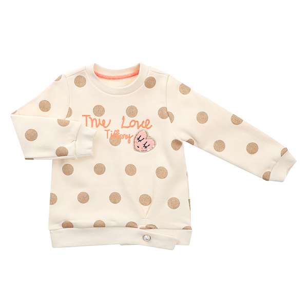 사이즈-110,120,130,145,155,165상세설명-골드도트 전판프린팅된 맨투맨으로 밑단립을 단추로 조절할수있는 디자인으로