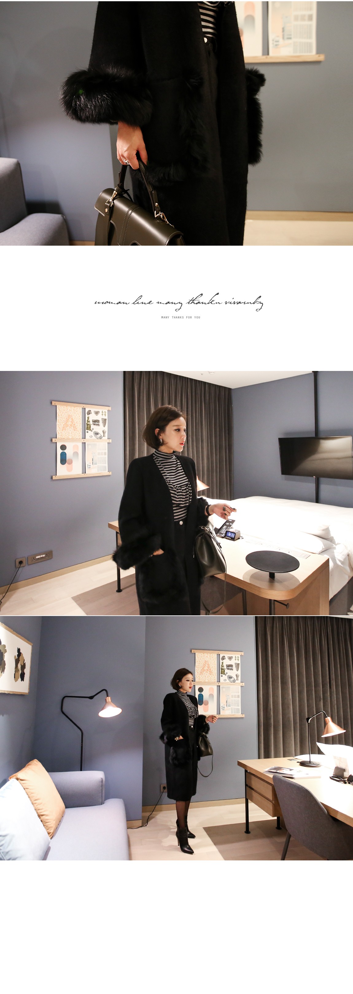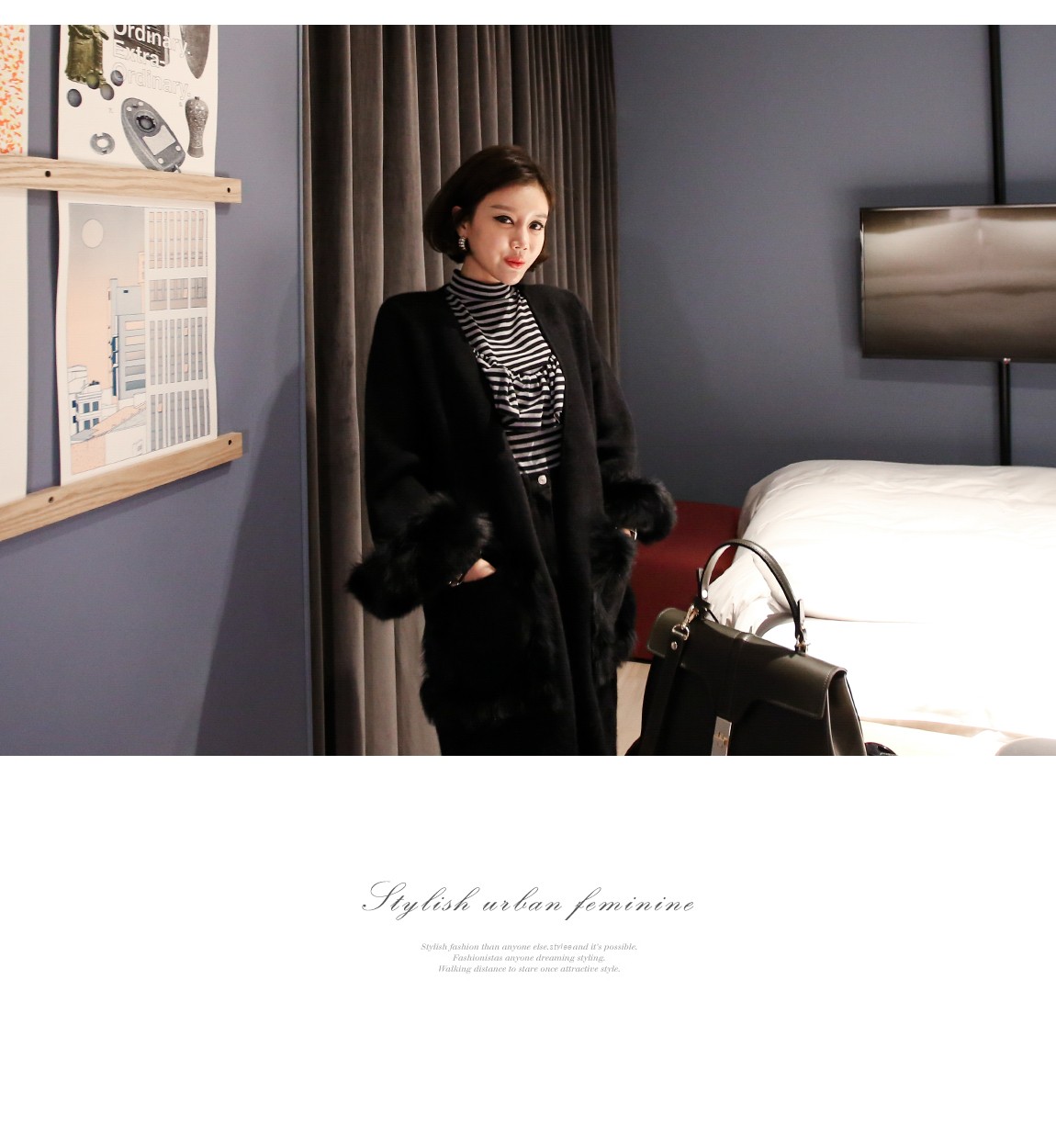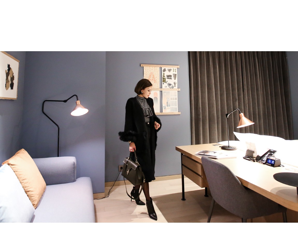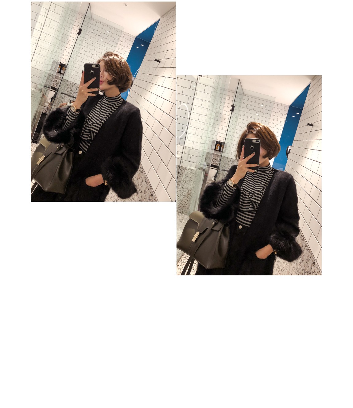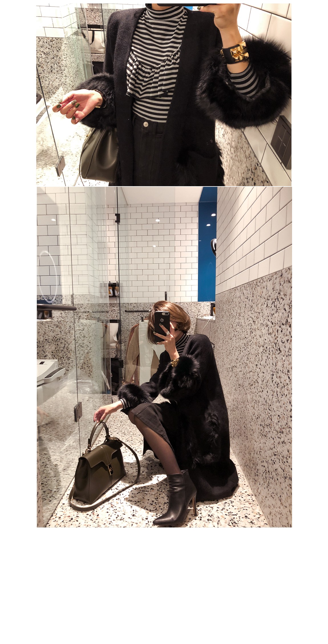 소매의 퍼는 탈착이 가능하여 다양하게 연출할 수 있어요