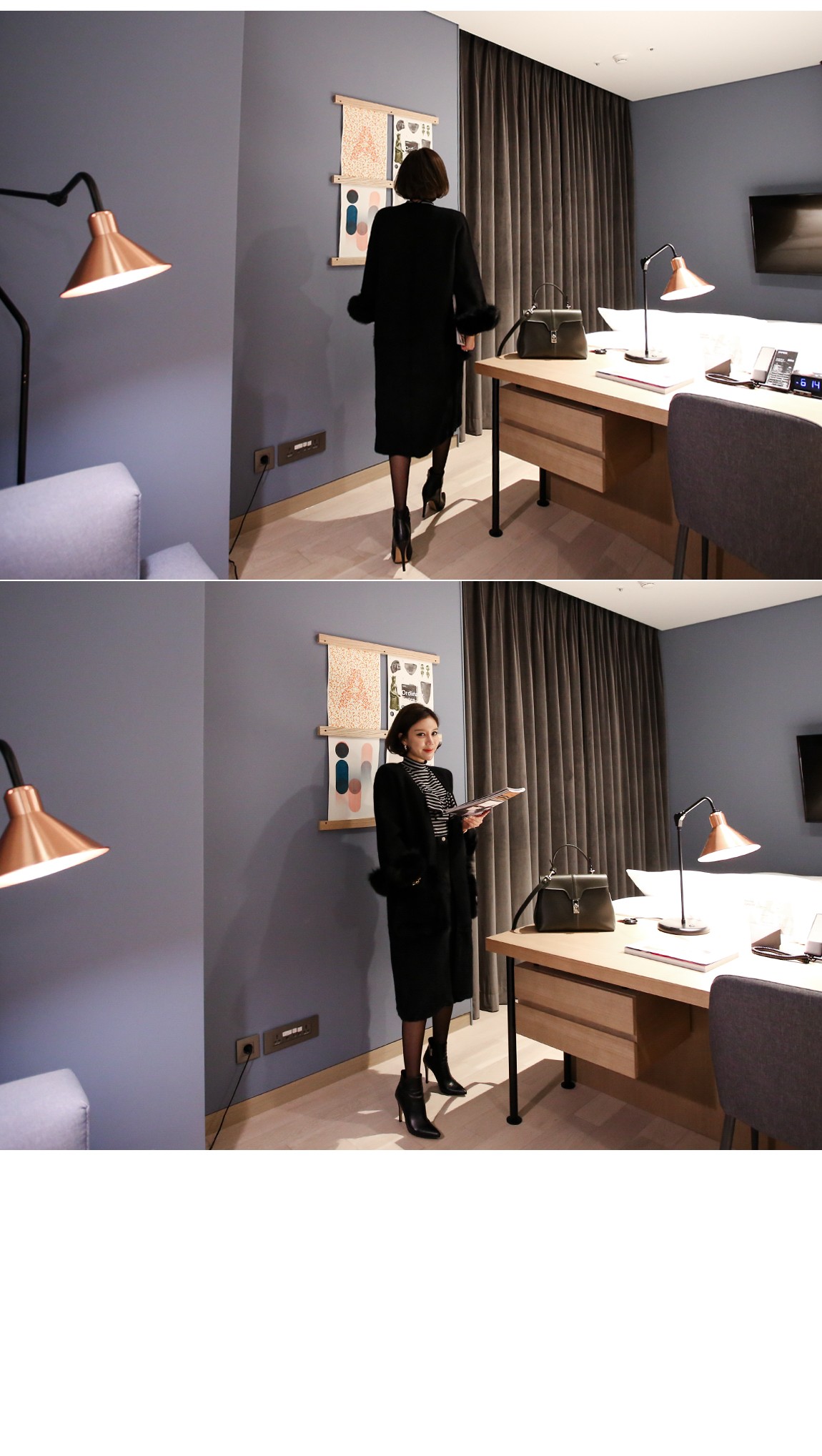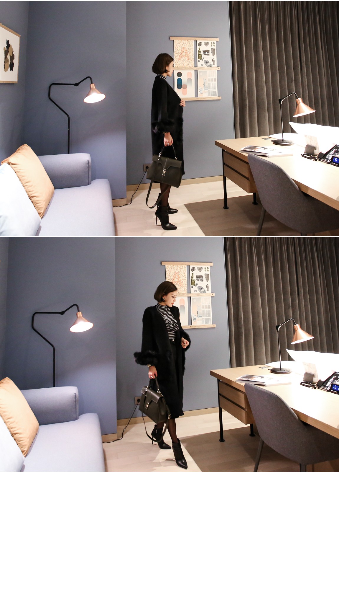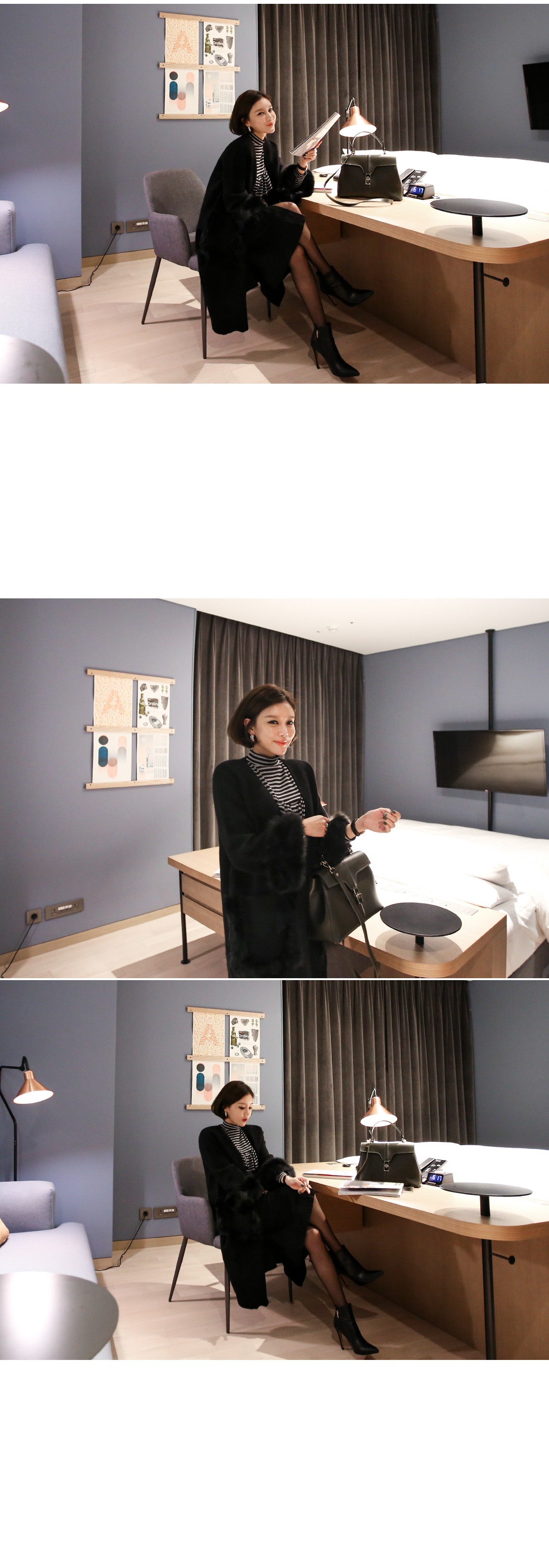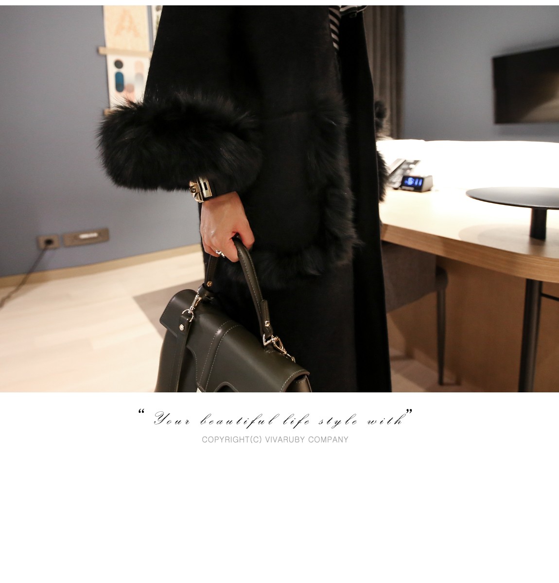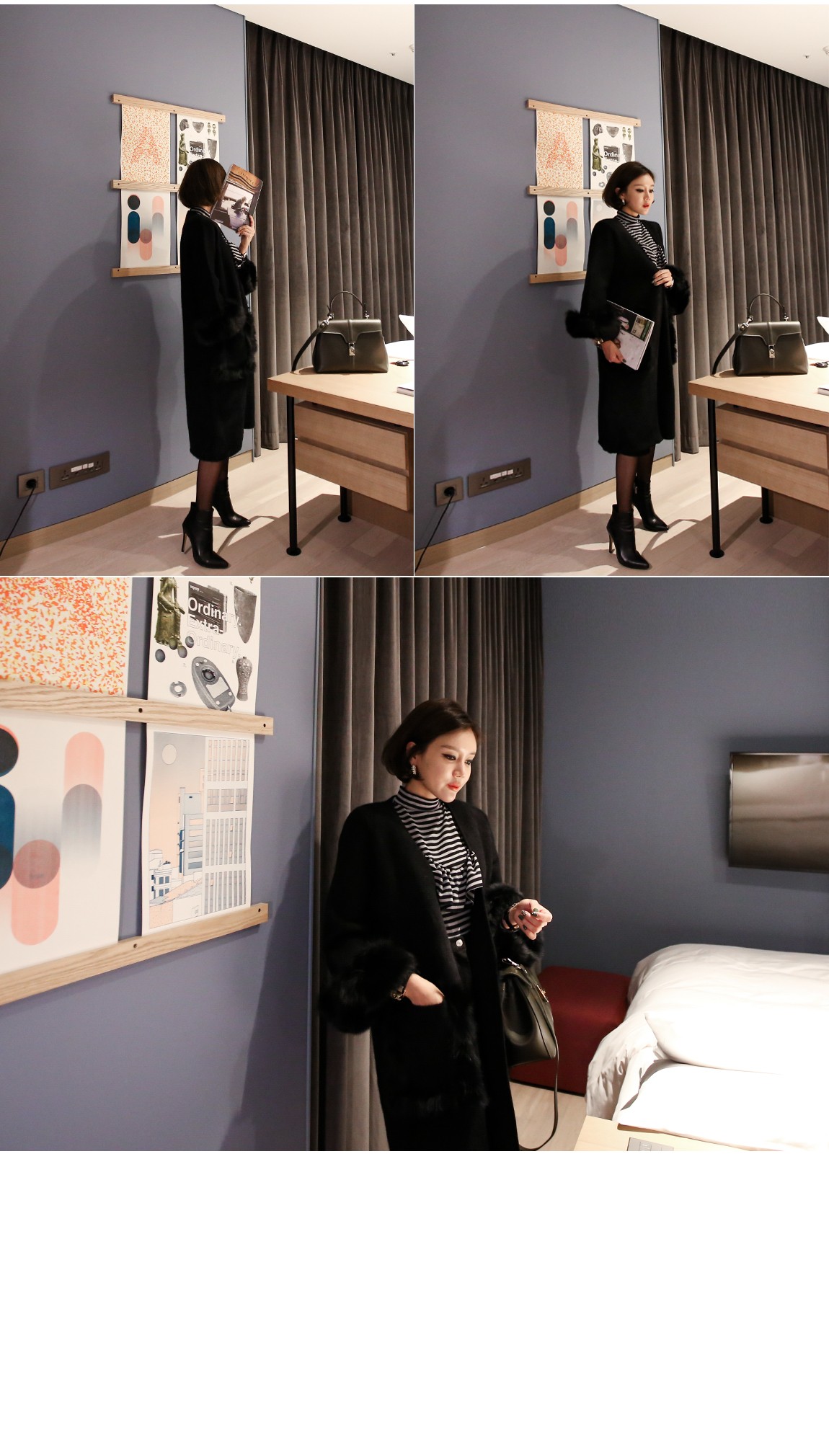 소매의 퍼는 탈착이 가능하여 다양하게 연출할 수 있어요
