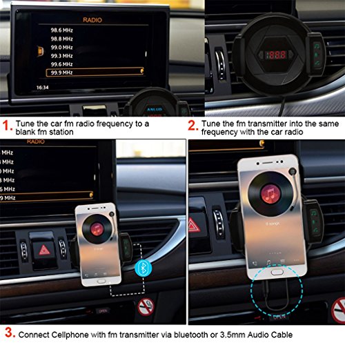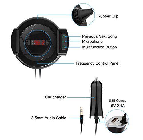 CAR BLUETOOTH FM TRANSMITTER: The Bluetooth FM transmitter can transmit the music of your Bluetooth enable smart device to your car's stereo via FM signal. Support FM frequency range from 87.5MHz to 108.0MHz.