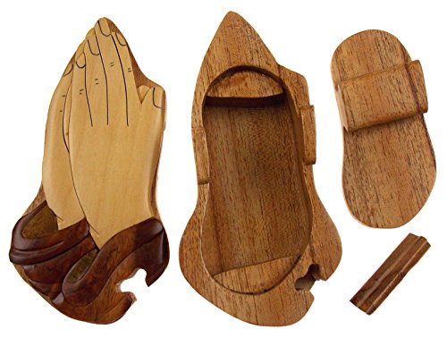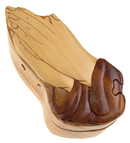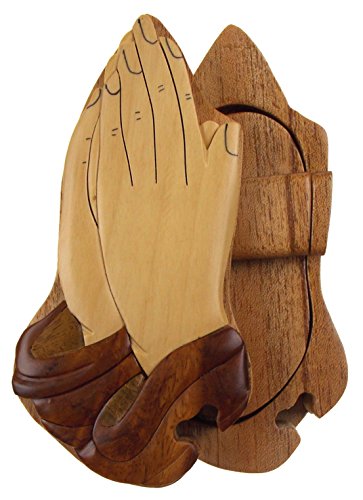 Studio : Hickoryville Publisher : Hickoryville Binding : Kitchen Product Description Handmade carved Praying Hands wood intarsia puzzle box bundled with Hickoryville instructions on opening and closing the puzzle box. This secret puzzle box is a beautifully handcrafted creation, high quality workmanship, made of natural wood. The box is a puzzle that comes apart into four pieces and discovers a secret space to keep special treasures. Inside storage space is approximately 3.2 inches long x 1.8 inches wide. Every box is a unique, handcrafted creation and yours may vary slightly from the photos. 0