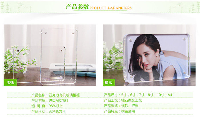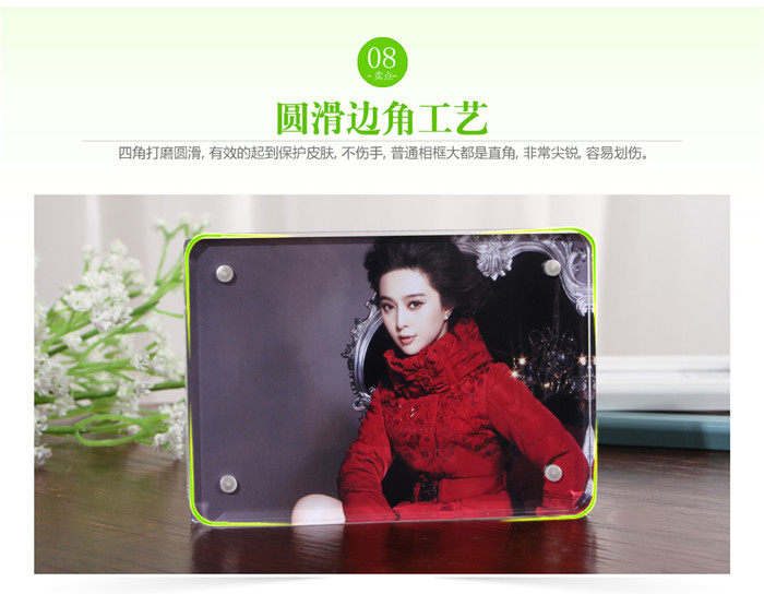圆角处理,不刮手。档次更高,放照片效果更好。因为是圆角的,建议比相片拍大一寸,譬如5寸相片拍6寸相框,6寸相片拍7寸相框。如果相框和照片一样大也可以,只需要把相片的四个角做成圆角就可以了。