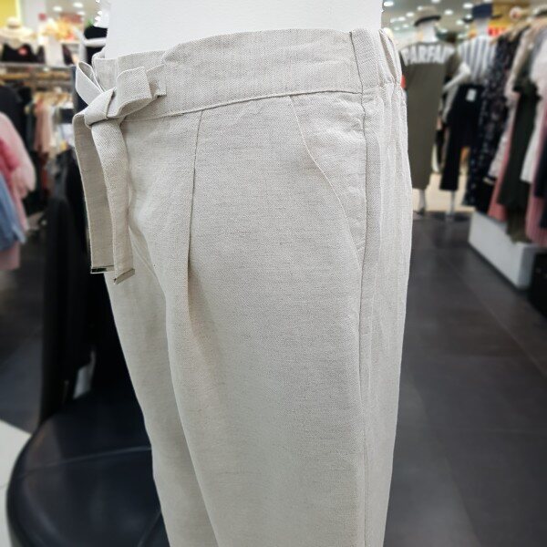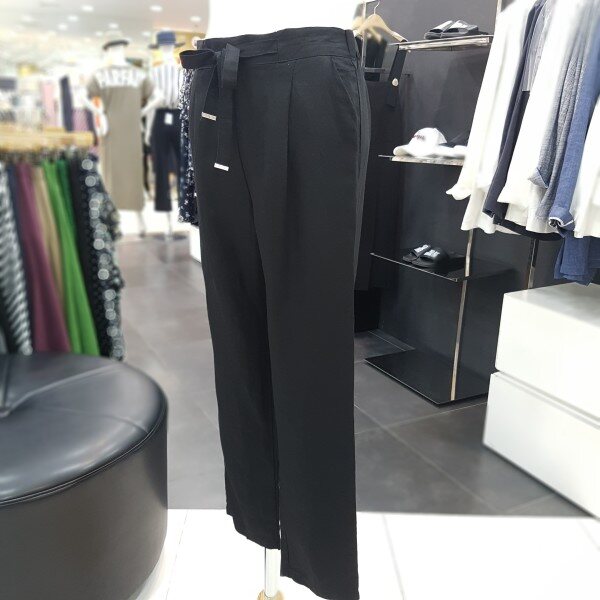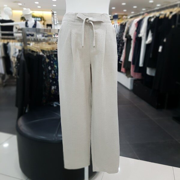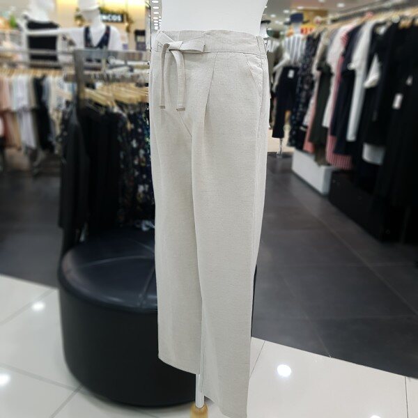 허리밴딩처리가 되어 있는 린넨 팬츠 입니다 레이온 혼방으로 뻗뻗한 린넨의 단점을 보안한 소재로 부드러운 터치감을 느끼실수 있습니다 리본 장식과 앞주름이 자연스럽게 있어 뱃살 커버에도 좋으며 편하게 착용 가능한 제품 입니다