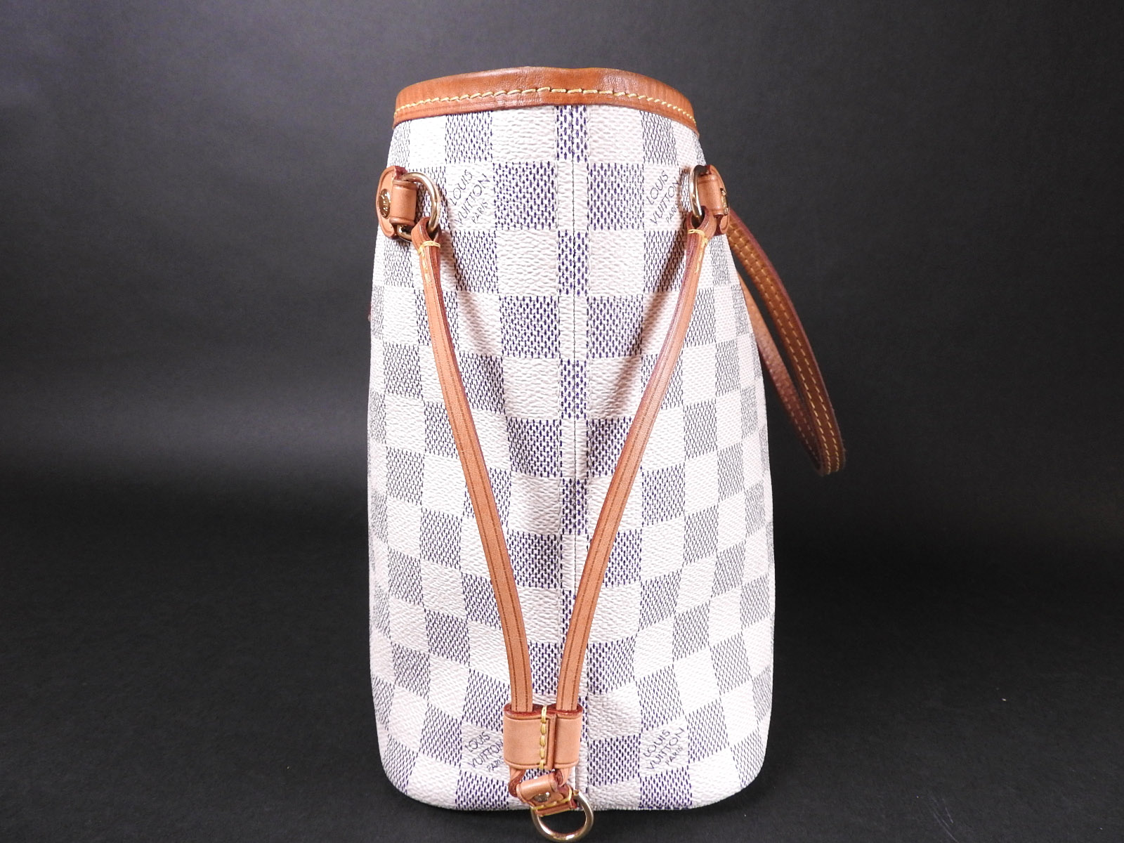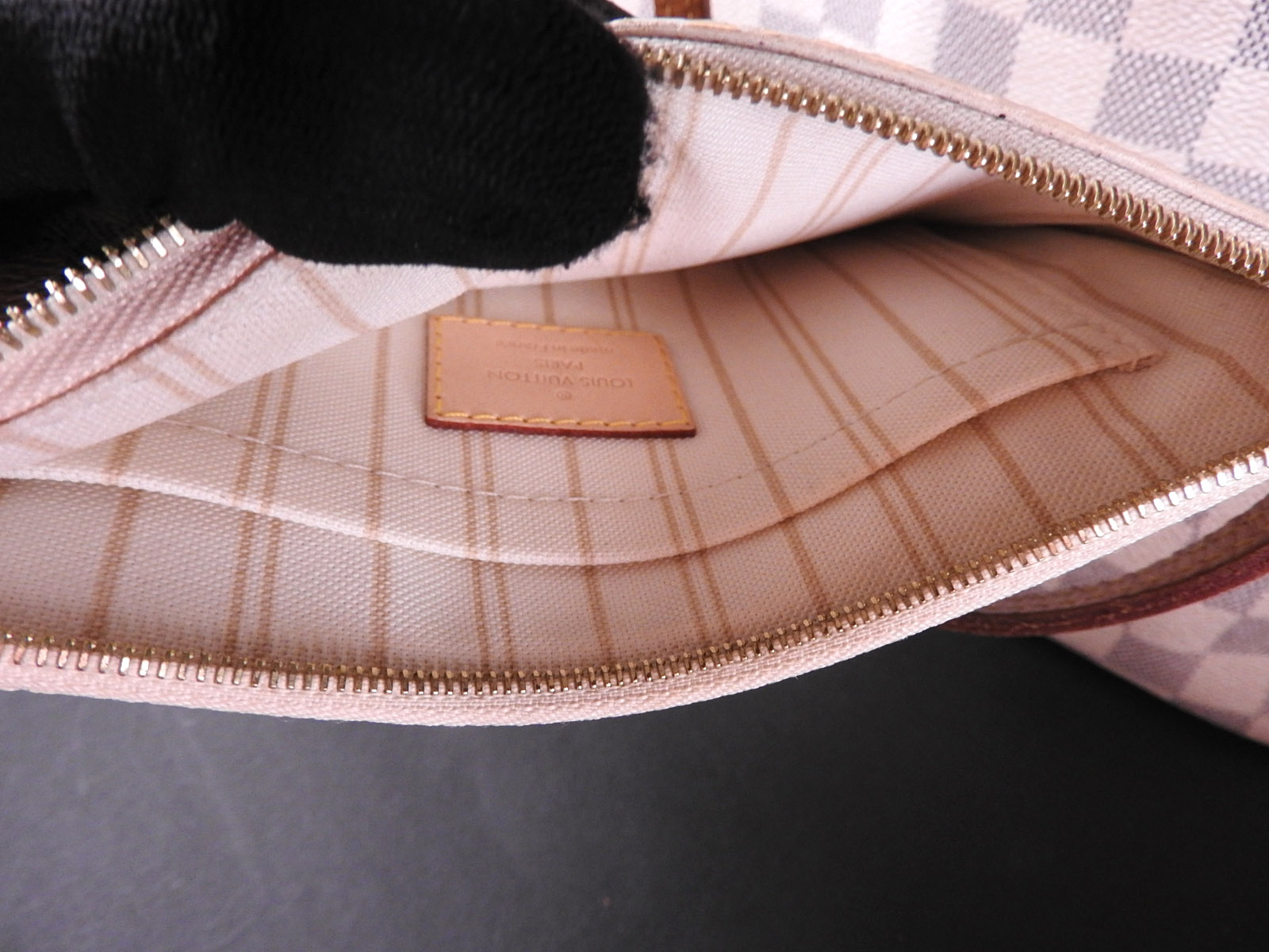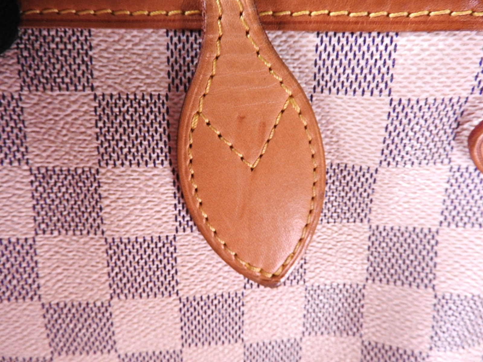 | Exterior | Damier azur: Slightly used feeling. Slightly stained and tanned. Leather: Used feeling. Some stains, tanning and small wrinkles. |