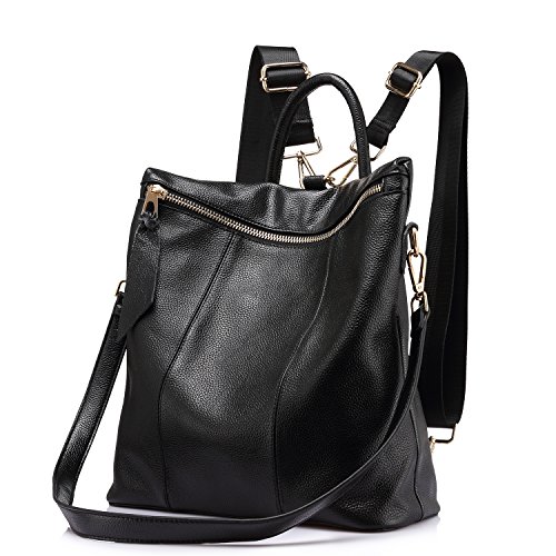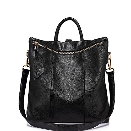 -. Feature : LARGE CAPACITY: Enough roomy. 1 main compartment with 1 interior zipper pocket and 2 interior slot pockets. Can hold A4 magazine and iPad, some of you books, folding umbrella, clothes, water bottle and other small necessities. 1 back zipper pocket offers quick and easy access for small items / MULTI USE & OCCASIONS: Simple but stylish. Single shoulder carried by removable straps. Backpack carried by 2 adjustable straps. Very convenient for shopping, dating, office, school, travel, business and other daily occasions / STITCHED MATERAIL: Quality gold hardware. Soft split leather in front and synthetic leather in the back. Detailed streamlined stitching. The color of front and back may vary slightly / DIMENSION: Size: 12.4" x 12.6" x 5.1"(W x H x D). Strap height:3.5". Weights about ~ 2.09lb / 100% MONEY BACK GUARANTEE: If broken, damaged or wrong items received, just contact us and send a picture, we will full refund or resend within 24 hours