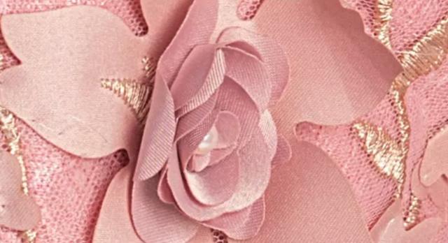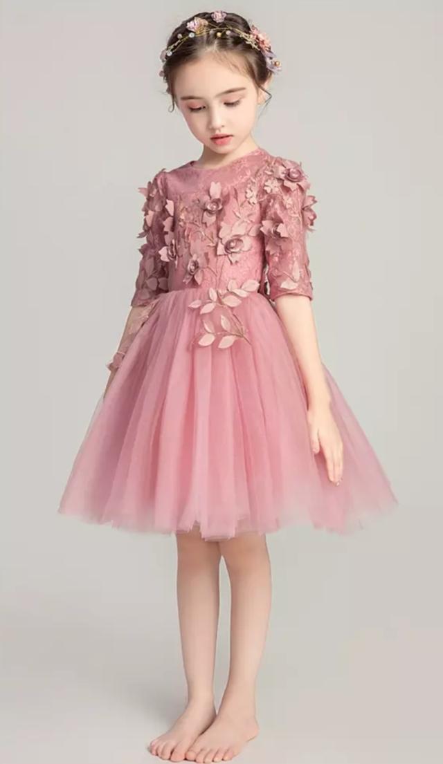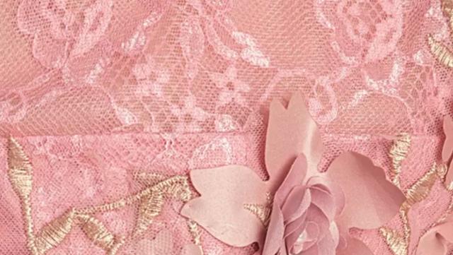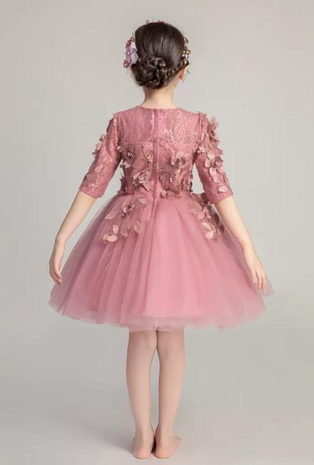 結婚式や発表会に、お花の膝丈レースドレスです。