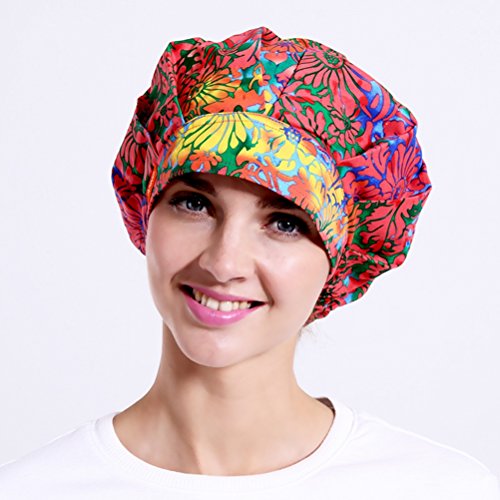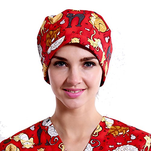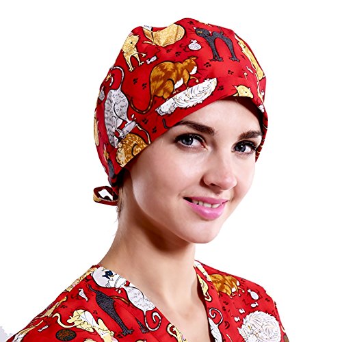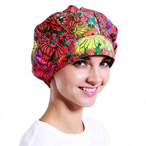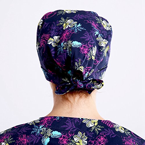 Outsport Women Print Surgical Capss Bouffant Scrub Hats Cotton for Long and Short Hair