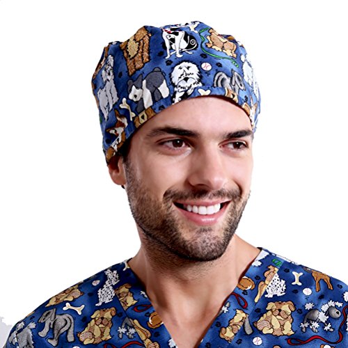 Outsport Print Dog Surgical Capss Bouffant Scrub Hats Cotton for Men