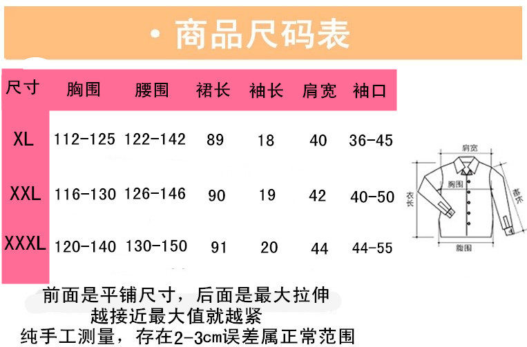 以上提供体重范围仅供参考,毕竟每个人体型不同,注意参考下面尺寸表内具体尺寸大小,有什么不明白的可以咨询我们在线客服~很高兴为您服务!