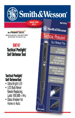 ReleaseDate : 2011-06-15 Studio : Smith Wesson Flashlights Publisher : Smith Wesson Flashlights Binding : Sports Product Description Smith Wesson Tactical Penlight/ Self Defense Tool runs on 2AAA batteries (included). It contains an Ultra Bright LED Bulb that never needs replacing. It is also a self defense tool and glass breaker for the home or auto. 0