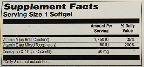 -. Binding : Health and Beauty -. Brand : Solaray -. EAN : 0076280090079 -. Feature : More of the active ingredient can be used by the body for optimal results / Powerful antioxidant shown to have positive effects on the cardiovascular system / Added vitamin A and vitamin E support the tissue health and proper function of the heart -. IsAdultProduct : 0 -. Label : Solaray -. Manufacturer : Solaray -. Model : 076280090079 -. MPN : 076280090079 -. NumberOfItems : 1 -. PackageQuantity : 1 -. PartNumber : 076280090079 -. ProductGroup : Health and Beauty -. ProductTypeName : HEALTH_PERSONAL_CARE -. PublicationDate : 2014-10-11 -. Publisher : Solaray -. ReleaseDate : 2015-06-22 -. Size : 60 -. Studio : Solaray -. Title : Solaray Bio CoQ10 Softgel, 60 mg, 60 Count -. UPC : 076280090079