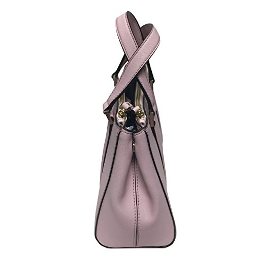 -. Brand : kate spade new york -. Color : cipria -. Department : womens -. EAN : 0098689764399 -. Feature : Imported / Saffiano leather; 14-karat light gold hardware 11" W x 8" H x 4.5" D / Top handles with 5" drop / Tab-snap closure / Center lined interior with zip, cellphone and multi-function pockets is flanked by zipper compartments -. ProductGroup : Shoes -. ProductTypeName : HANDBAG -. Size : small -. Title : Kate Spade Small Laden Newbury Lane Cipria -. UPC : 098689764399