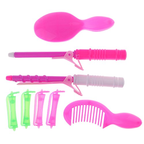 -. Title : MagiDeal 8pcs Dolls Hair Accessory For Barbie Kelly Doll Hair Curler Comb Mirror Curling Iron Set Dresser Dress Up Accs