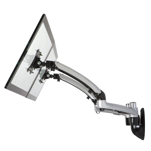 - Feature : Wall mount type; Supports up to 2 x 27" LCD monitors; Color: Metallic Silver (please contact us for special order of white or red color) / Solid Aluminum die-cast construction; Space saving with its compact design; Maximum productivity and supreme ergonomic comfort; Easy installation and dis-installation / Weight Capacity: Supports 8.4 - 17.8lbs (3.8 - 8.1kgs) for each monitor; Tilt: +90 Degree / -45 Degree; Rotation: 180 Degree; Swivel: Max 180 Degree; Mounting Pattern: VESA compliant: 75x75 and 100x100; Extension Range: 4.09" - 26.8" (104 - 680mm); 11" - 12.6" (280 - 320mm) height adjustment range / Swift and easy movements and adjustments; Maximum adjustment rendered by tilting, swiveling, rotation and dynamic height adjustment / Neat and efficient cable management; Clean look with minimal hardware visible from underside of work surface