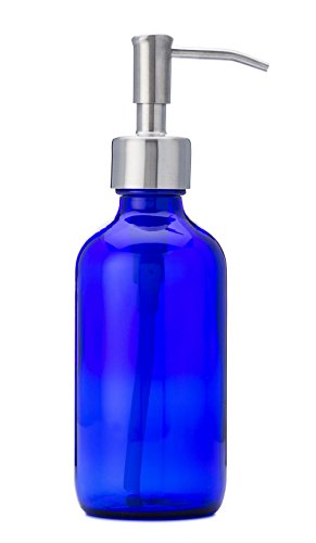 Petite Blue Glass Soap and Lotion Dispenser with Stainless Steel Pump - 8 oz