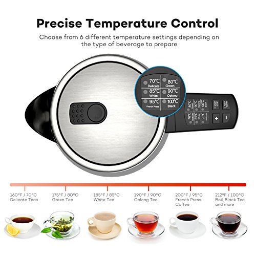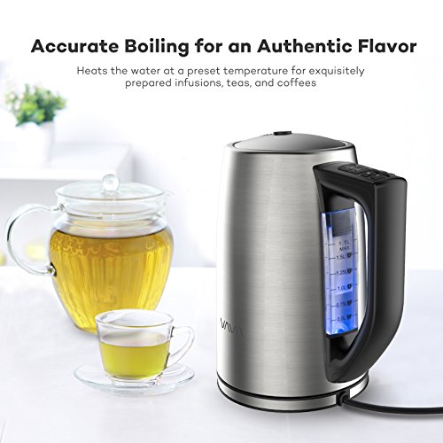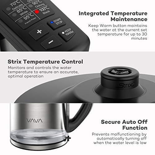 Studio : VAVA Publisher : VAVA Binding : Kitchen Product Description Utilizing water that's heated up at the right temperature to Extract the essence of tea leaves and coffee powders is key to providing your beverages with the most authentic flavor. By enabling you to choose between 6 temperature settings, the VAVA electric Kettle will let you prepare infusions, teas, and coffees that have never tasted so good. 0