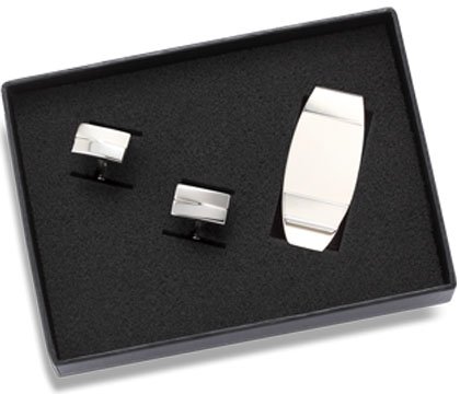 -. Title : Aeropen International MCU-09 Set Metal Chrome Money Clip and a Pair of Cufflink in Black Gift Box - 2 Pieces