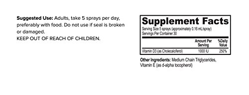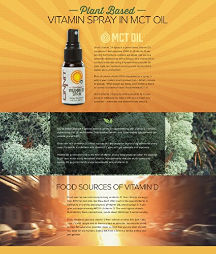 -. Binding : Health and Beauty -. Brand : Onnit -. EAN : 0819444014371 -. Feature : Dispensed as a spray, allowing it to enter your system much quicker than a tablet or capsule. / 1,000 IU of Vitamin D per serving / Stable, pure and potent. / No Sun, No Problem! / Serving Size: 5 sprays -. IsAdultProduct : 0 -. Label : Onnit -. Manufacturer : Onnit -. MPN : do16025 -. PackageQuantity : 1 -. PartNumber : do16025 -. ProductGroup : Health and Beauty -. ProductTypeName : HEALTH_PERSONAL_CARE -. Publisher : Onnit -. Studio : Onnit -. Title : Onnit Plant-based Vitamin D3 Spray in MCT Oil (24mL) -. UPC : 819444014371