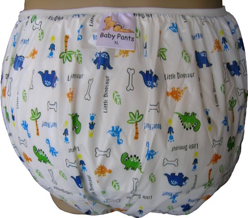 -. Brand : Baby Pants -. Color : Dinosaur Nursery P.R.Int -. Feature : Full range of sizes (Small - 5X large) colors and P.R.Ints available and in stock at our store. / Premium quality 4 mil durable plastic . / Heat welded side seams, snug comfortable waist and leg bands for a highly effective moisture barrier. / Best fit loose and blouse over diaper, cut full with a wide crotch to accommodate bulkier cloth diapers. -. Label : Baby Pants -. Manufacturer : Baby Pants -. ProductGroup : Health and Beauty -. ProductTypeName : PERSONAL_CARE_APPLIANCE -. Publisher : Baby Pants -. Studio : Baby Pants -. Title : Baby Pants Classic Dinosaur Nursery P.R.Int Adult Pullon Plastic Pants