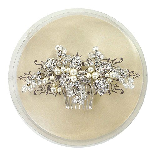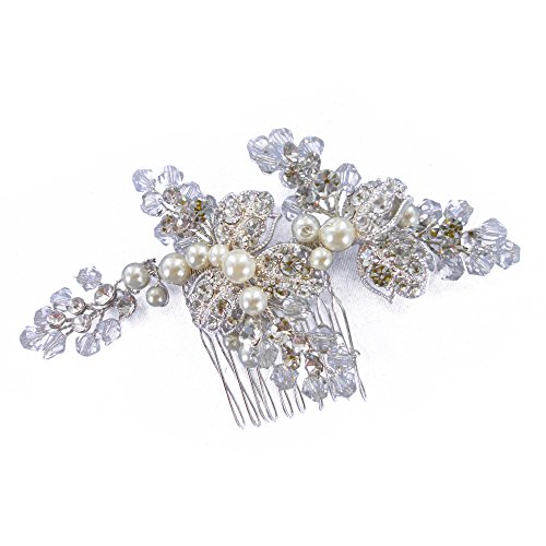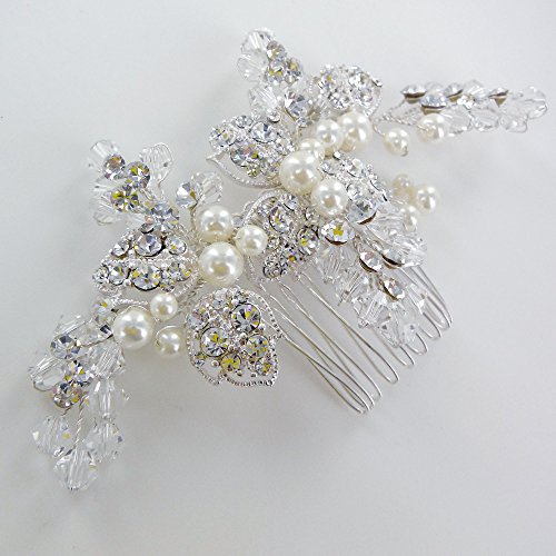 Bridal Wedding Hair Comb Handmade Silvery With Austrian Crystal and Pearls (9382)