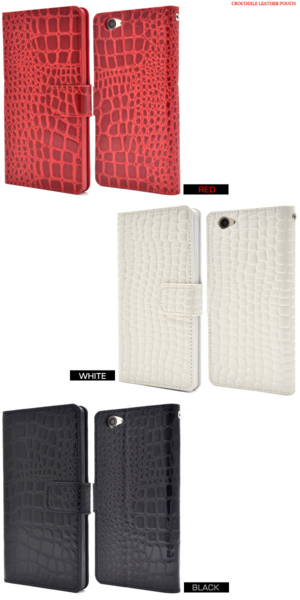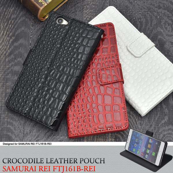 高級感溢れるクロコダイルレザーデザインのらくらくスマートフォン4 F-04J用スタンドケースポーチ。