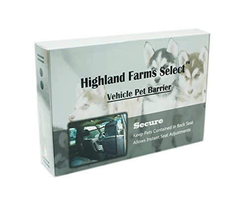 -. Feature : The Highland Farms Select Brand Safety Mesh Car Barrier for Dogs is created to fit almost any vehicle including cars, , SUV's, and trucks. / Secure the bottom corners to the seat belt housings or other fixed points. In all cases, use the grommet position that will create a snug fit. / Keep your pet at the back and make your drive safe. Durable see through mesh, pet's claws won't get caught. / Easy to Install and remove with hooks and adjustable strips. Can be attached either to the handles above the door or the front seat headrests. / Highland Farms Select Brand is known worldwide with superior product quality and service. After-sale services: within one month, if the product you bought have any problem, please contact us and we replace you a new one.