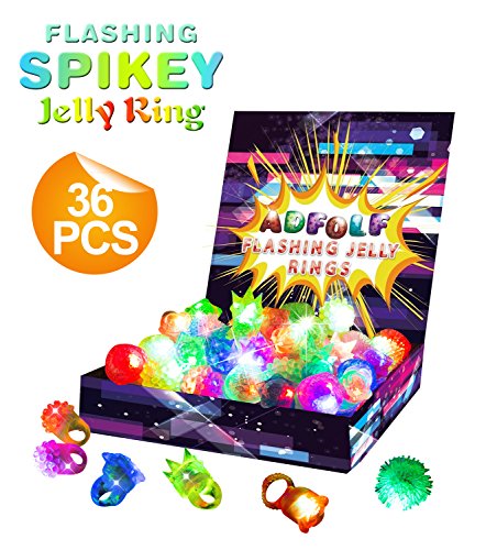 The led light up rings are all individually wrapped and neatly packaged in columns and rows in a display box. They come in 36 pieces led flashy bumpy rings of assorted colors and shapes. Available in an assortment of colors. These flashing led light up rings are going to be the hit of any party,Halloween,Christmas holiday!