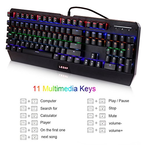 -. Title : LESHP Mechanical Gaming Keyboard Red Switch with 7-Color Backlit, 10 Anti-ghosting Keys for Gaming, Industrial, Office -Black