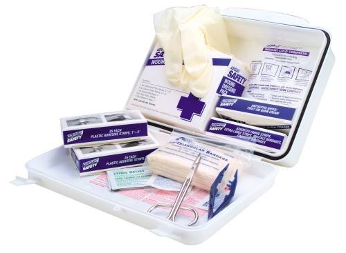 Studio : ERB INDUSTRIES, INC. Publisher : ERB INDUSTRIES, INC. Binding : Tools Home Improvement Product Description Tough plastic case. Exceed requirements of ansi Z308.1-1998. Contents: adhesive strips 1” x 3” (32), fabric knuckle bandages (2), fabric fingertip bandages (2), large wound pad 5” x 9” (1), gauze pad 3” x 3” (5), gauze bandage 4” (1 roll), adhesive tape 5” (1 roll), alcohol wipes (20), antiseptic towelettes (6), first aid/burn cream packets (6), triple antibiotic ointment (6), sting relief wipes (3), triangular bandage (1), exam gloves (4), cold pack (1), scissors (1), forceps (1), first aid guide (1) box dimensions: 6.5” L x 9.5” W x 2.75” D. 0