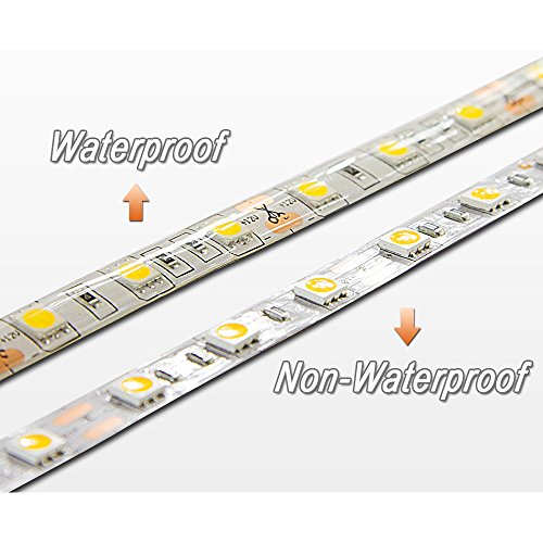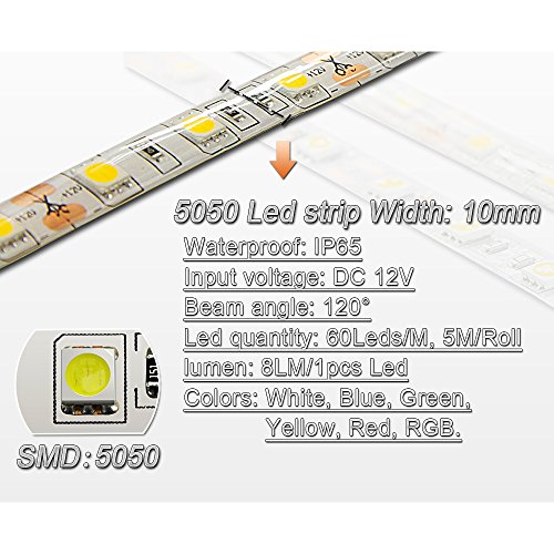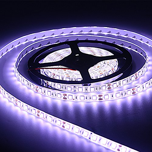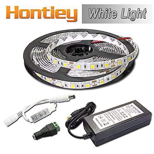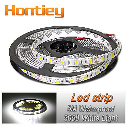 Hontiey 5M / 16.4 Ft Led Strip SMD 5050 Waterproof 300 LEDs Pure White Kit + DC Connector + Mini Controller + Power Supply