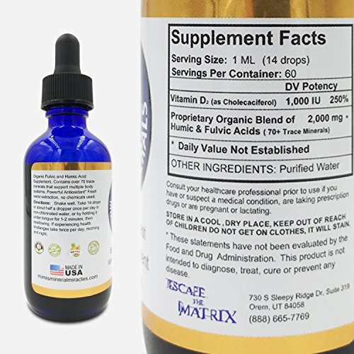 Mimi's Miracle Minerals is the finest Fulvic acid and Humic acid trace mineral supplement available on the market today - the ultimate mineral supplement, containing over 70 trace minerals.